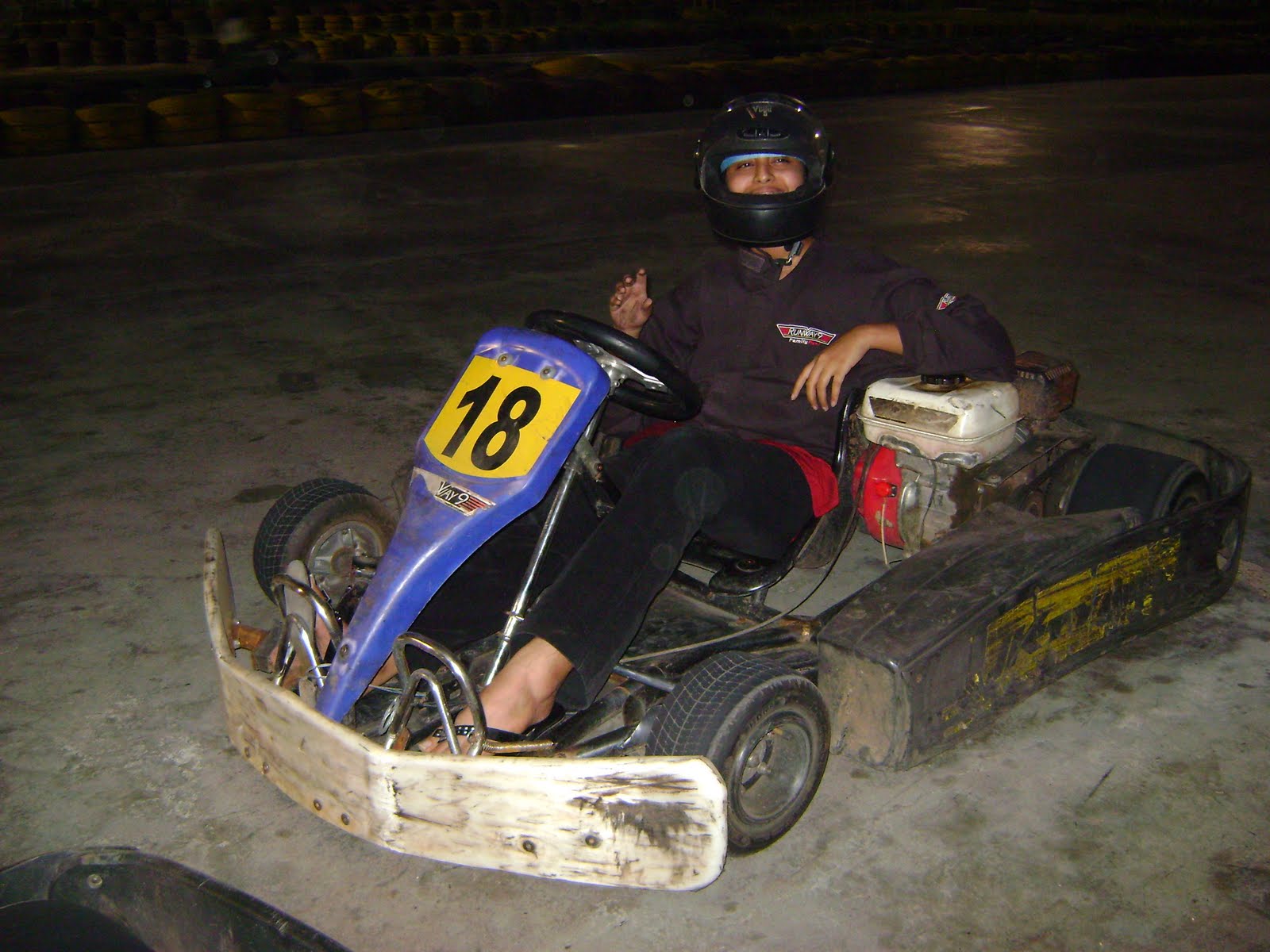 Each one of us got to do 4 laps around the rink.It's a simple manoeveuring procedure,nothing rocket science-ish.If I could do it,so can anyone.The steering was a bit stiff,though in hindsight,I can see how that was a necessity.It effectively steers you in the right direction.You're so busy concentrating on keeping yourself on track you don't overspeed.Of course,experienced drivers,overconfident souls and nervous first timers almost always display speed symptoms. One poor girl pressed on the accelerator and forgot the existence of the steering wheel and promptly slammed into a wall of old tyres stacked in a corner.That was a stray incident,though. The rest of us managed quite well.